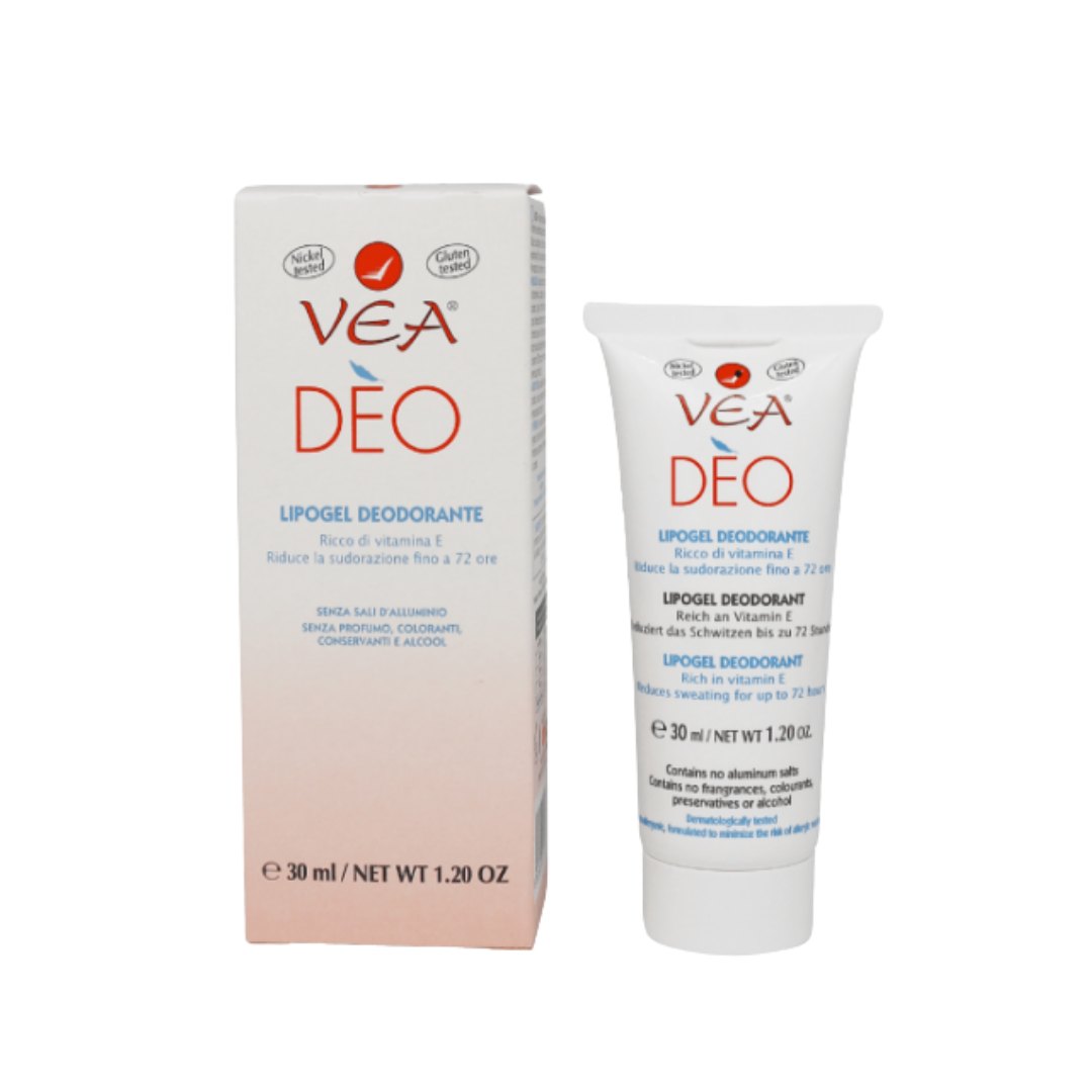 VEA DEO este un deodorant lipogel pe bază de Vitamina E, cu eficacitate și tolerabilitate ridicate. Reduce transpirația (demonstrat prin teste instrumentale) și mirosul neplăcut (testul sniff) în mod natural, prin combaterea proliferării bacteriilor care provoacă mirosul neplăcut. De lungă durată, o singură aplicare este eficientă până la 72 de ore. Nelipicios, non-gras și nu lasă pete pe haine.