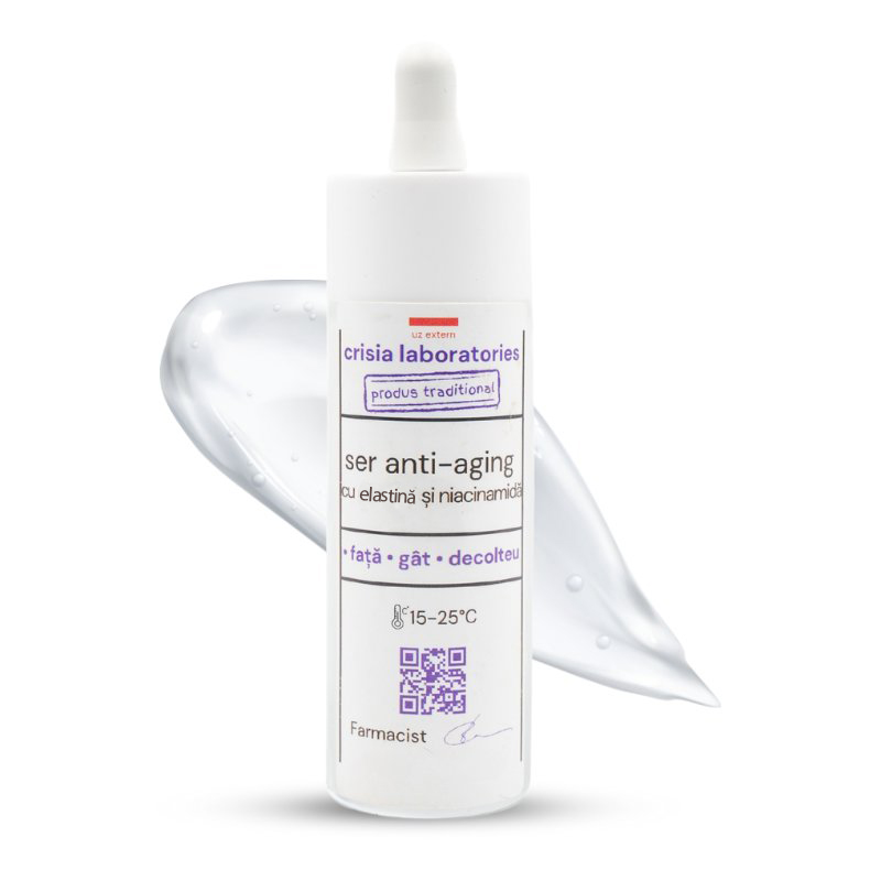 Lista de ingrediente: Elastina, Niacinamida, Parfum musk, Apa distilata.